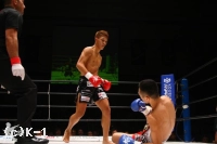 「今回は三日月蹴りで倒すことが作戦の一つだったんで、それで倒すことが出来てよかったですね。自分の中でも自信になりました。(対戦相手については?)最初にインローを蹴られた時にすねは硬いなと思いましたけど、それ以外は技も見えていたんで…そんな感じです。(これからの目標は?)リング上でも言わせてもらいましたけど、僕はK-1のベルトを目指してやっているんで。世界トーナメントではああいう形で負けてしまいましたが、ゲーオが持っている世界のベルトを獲りに行きたいです」