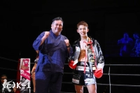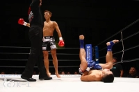 ともにオーソドックスで向き合い、野杁はまず右ロー、左インローを打ち込む。ややあってサウスポーに変わった野杁はローを入れていたが左三日月蹴りを突き刺し、これでポンフェイはダウン。何とか立ち上がったポンフェイだが、野杁は再び左三日月蹴りを突き刺し、これで初回ノックアウトを決めた。