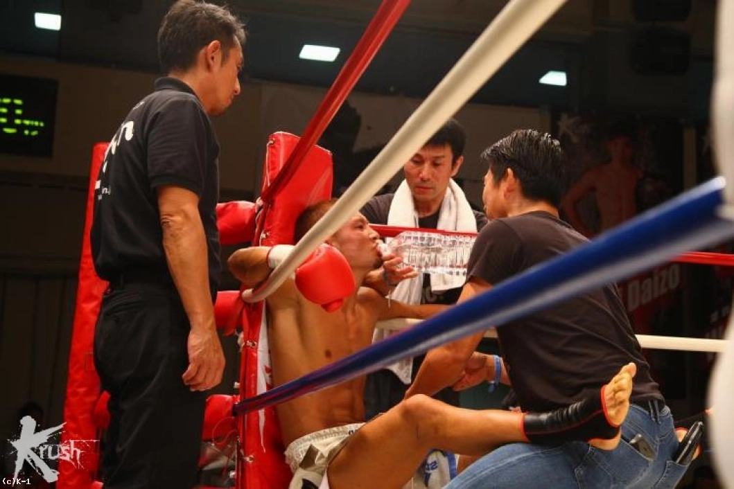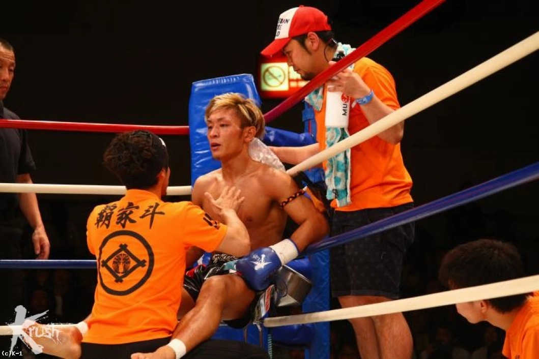 3R、覇家斗は右ロー、スーパーマンパンチと島野を攻める。島野もしかし左ボディ、右フックとパンチを返して反撃する。島野の右ストレート、左ボディに覇家斗は顔面ヒザをリターン。両者消耗が感じられるが、互いに好戦的な姿勢は崩さない。左右ボディフックを集める島野だが、覇家斗はこれに下がらない。逆に覇家斗の圧力に島野は下がらせられる。ラウンド終盤、バックブローをクリーンヒットした覇家斗は右ストレートを追加で浴びせ、島野にスタンディングダウンを与えて終了する。