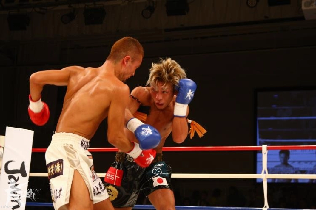 2R、覇家斗は跳びヒザから左右フックを繋いで島野を襲う。パンチを返す島野だが、次第に覇家斗の勢いが上回ってくる。笑顔を見せ攻防を楽しんでいるかのように余裕の感じられる覇家斗。前に出て、島野を追う展開となる。左フック、右ストレートと強打の交換でも覇家斗は下がらない。島野は左ボディをヒットさせていくが、覇家斗はダメージを見せない。逆に右ローを浴びせ、島野を苦し気な表情にさせる。