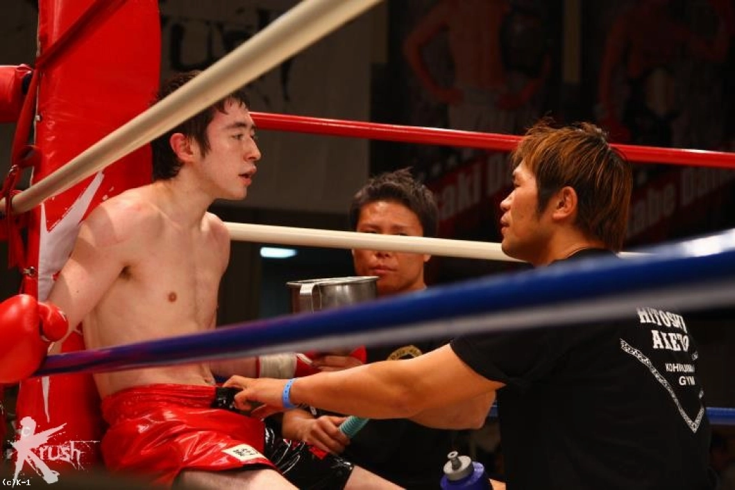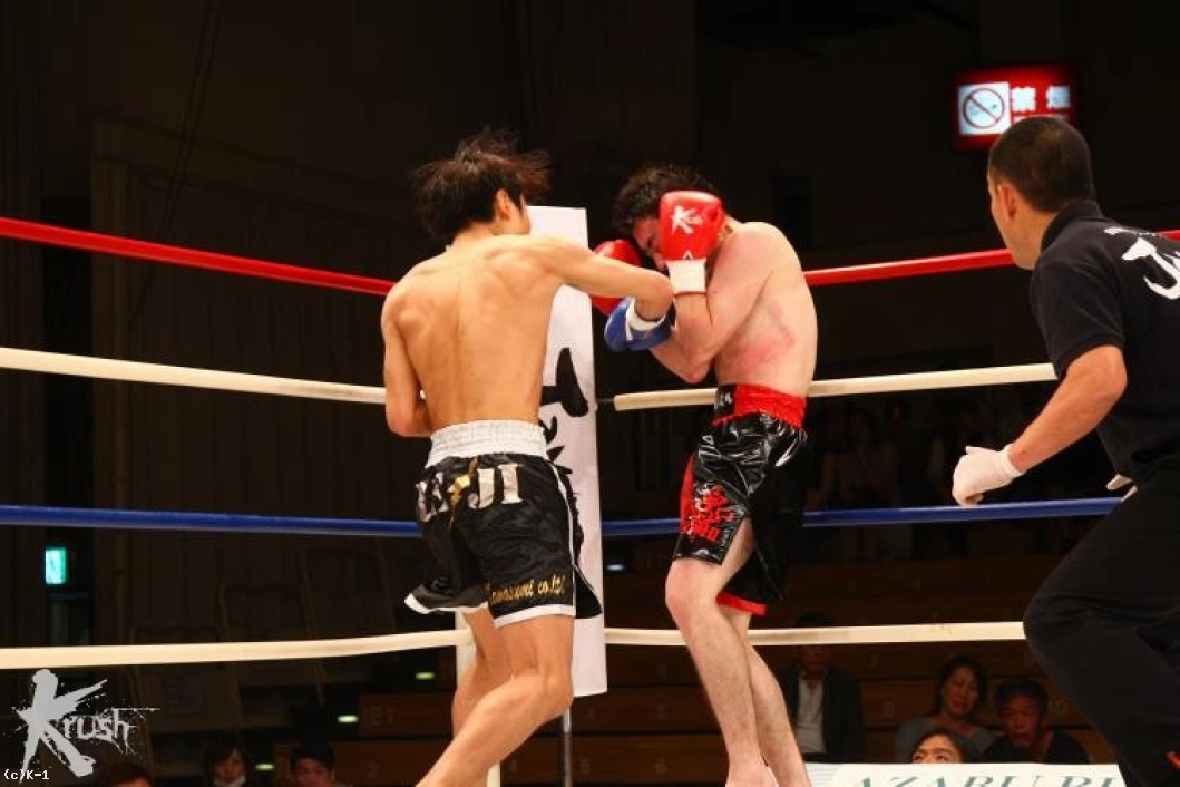 3R、ローでラッセルをけん制した笠見は、ラッセルが前に来たところで右クロスをクリーンヒット。これでラッセルは腰を落としてダウンを喫する。立ち上がったラッセルだがガードを固めて手が出ず、笠見がパンチから右ミドルに繋げてスタンディングダウンを奪取。最後も笠見が左フック、右ストレートとラッセルをコーナーに詰めて攻撃を浴びせ、スタンディングダウンで最終回のKO決着となった。