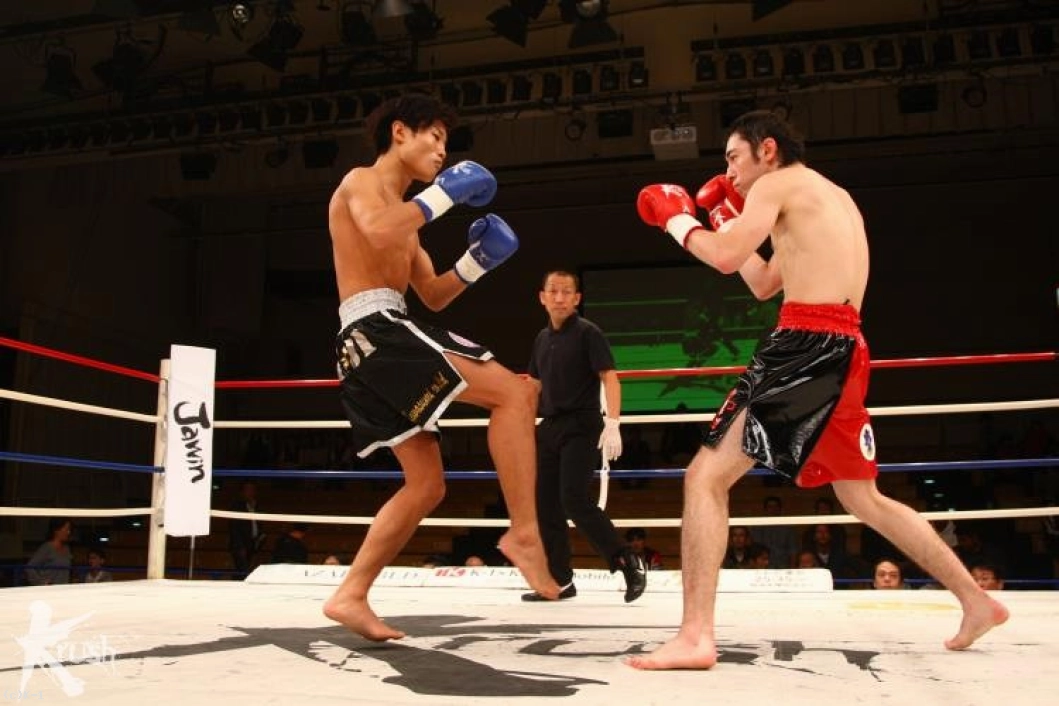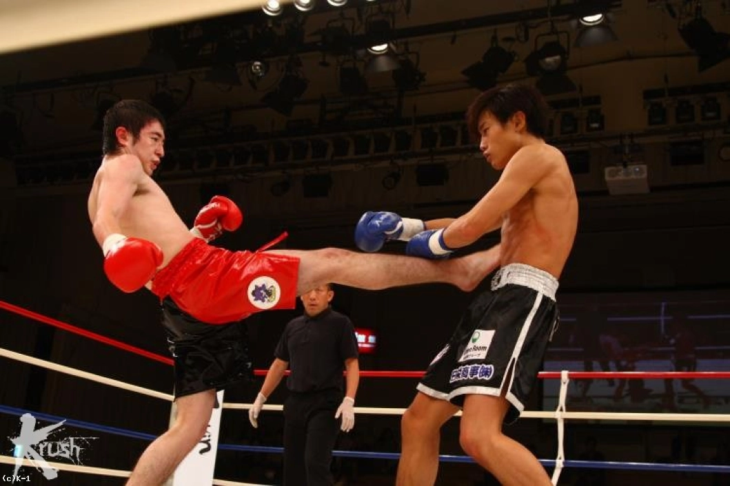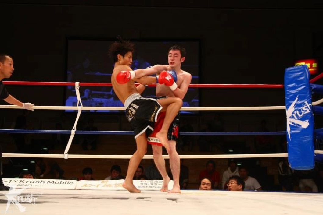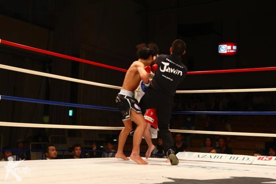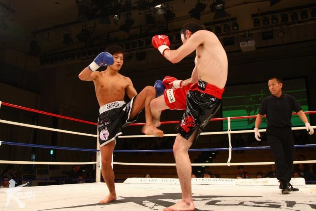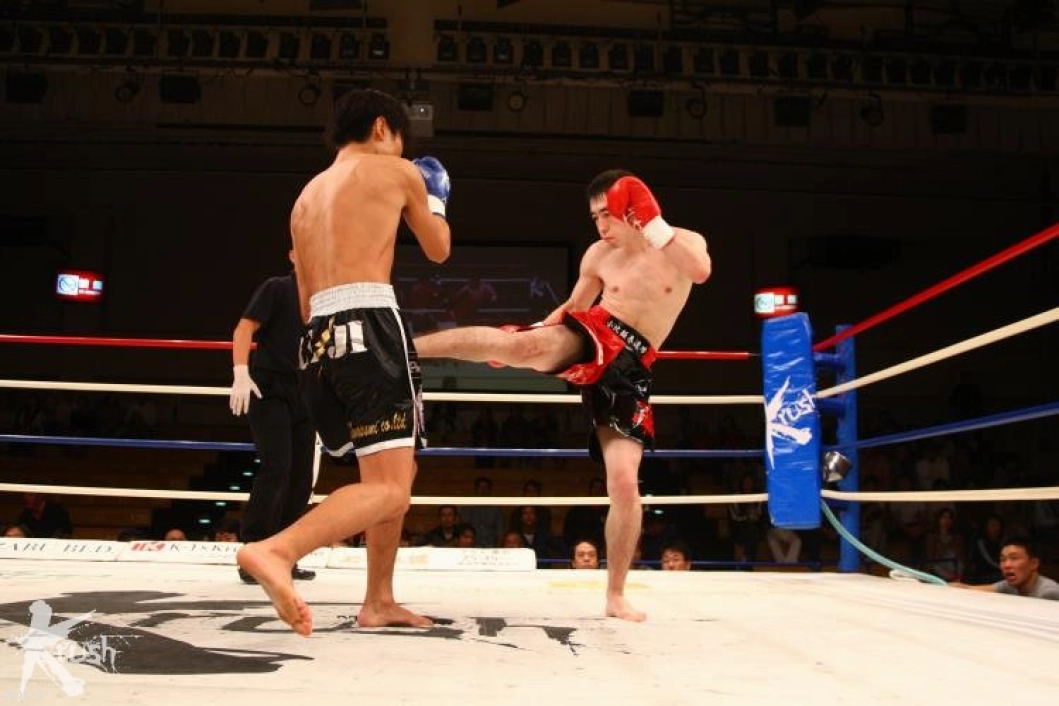 2R、変わらず手数では笠見が上回るが、ラッセルはブロックでこのパンチを弾きながら前に出て右ローキック。笠見はワンツー、右ストレート、右アッパーと振るうがラッセルは前に来る。しかし笠見が左フック、右アッパー、右ミドルと攻撃をまとめる場面ではラッセルも後退を余儀なくされる。
