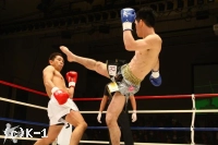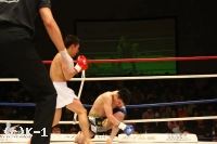 3R、山本は左の蹴りをロー、ミドルと飛ばし、そこから左と右のフックを飛ばすが、バックステップする加藤をとらえられない。加藤の右ミドルが鈍い音を立てて決まる。攻め込めない山本に対し、加藤は右ミドル、右ストレートと攻撃を見舞う。ブロックして当てさせない山本だが、やや守勢の印象。しかし終了間際に跳びヒザでアゴをとらえて加藤をフラつかせ、その後でフックをフォローし土壇場でダウンを奪って試合を終える。
