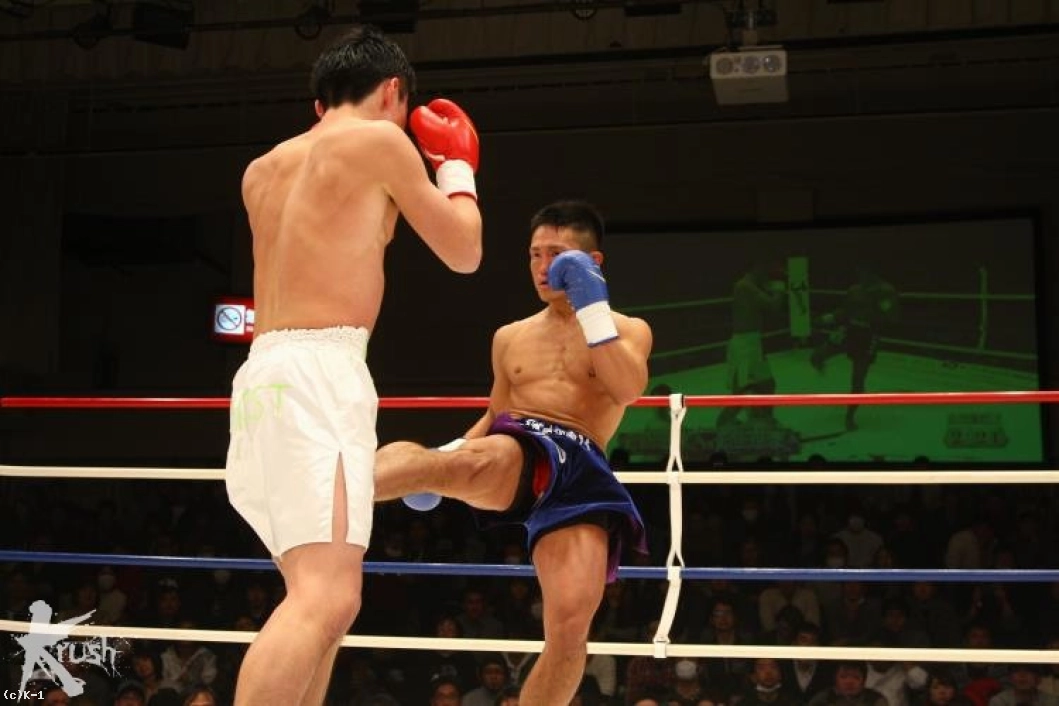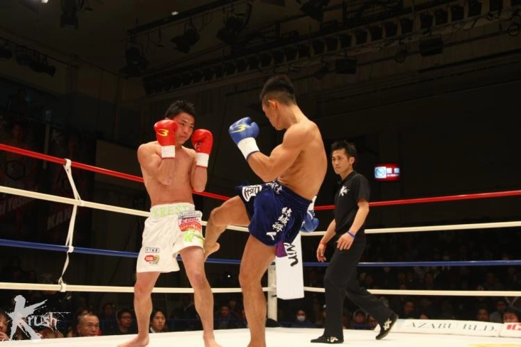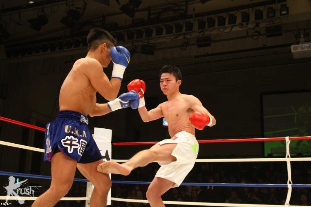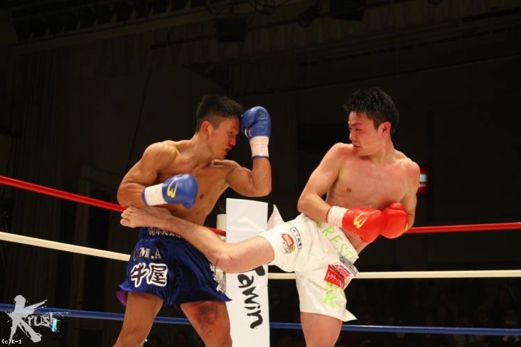 2R、石田は左インローを継続。結城は次第にこの蹴りで左足を跳ね上げられるようになる。足にダメージがあるか、勇気は距離を詰めてローの間合いを潰し、パンチ勝利を挑む。そして打ち合いでは結城が右ストレートをたびたび石田に見舞って優勢。しかし石田もジャブで距離を作り、左フック、ボディへのヒザと反撃する。