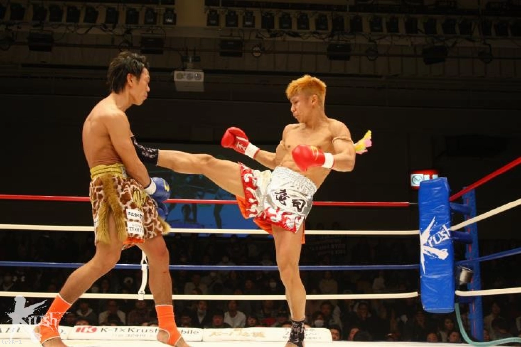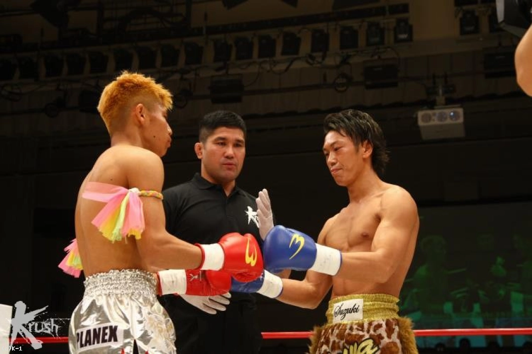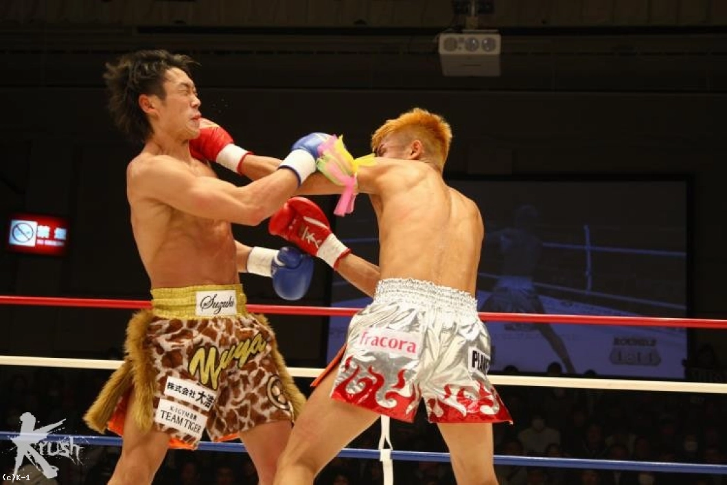 3R、カウンター狙いの待ちの戦法ながら、鈴木は巧みに展開して堀尾にクリーンヒットを与えない。逆にこのラウンドはジャブ、堀尾の前進に合わせた右ストレートとヒットが増えてくる。さらに、連打からボディにヒザを打ち込むと、堀尾はダメージを見せて後退。得意の跳びヒザを繰り出す堀尾だが、鈴木は再び前に出て行きボディへのヒザと攻勢。堀尾もハイキックで反撃するが、鈴木が左フックでもグラつかせて終了。