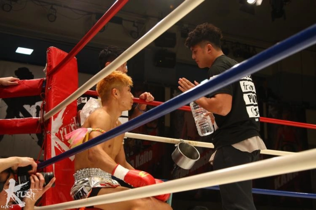 「試合の感想は?)堀尾選手は前から強いなと思ってましたけど、この試合に備えて凄く準備してきました。それを出すことができたと思います。でも、まだ自分の実力はすべて出せてないのでこれからも期待してください。(今後の目標は?)堀尾選手に勝てたので、-55kg級のベルトの挑戦者は僕でおかしくないと思います。4.22のK-1のトーナメントにも出場します。たくさんの応援団もつれていきます。今年はタイミングがよければ、KrushとK-1のベルトを獲れればと思っています」