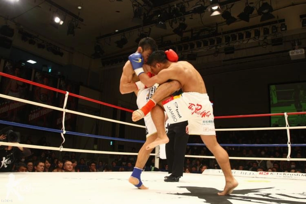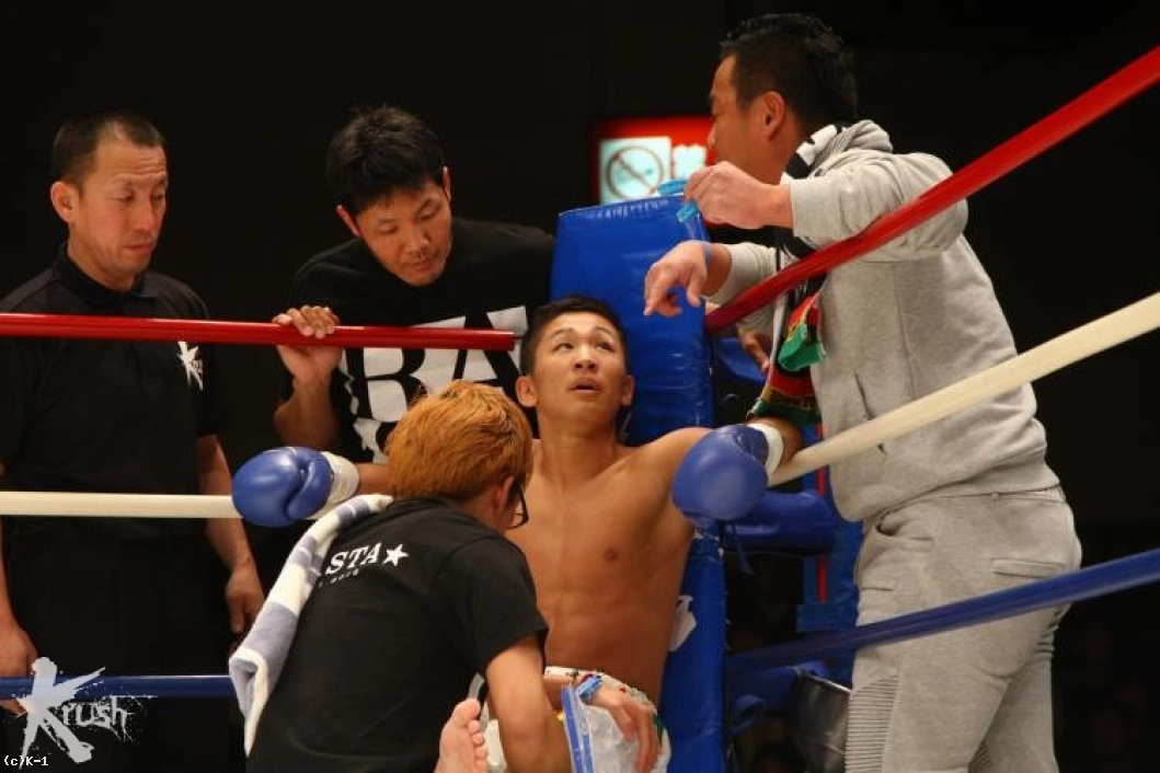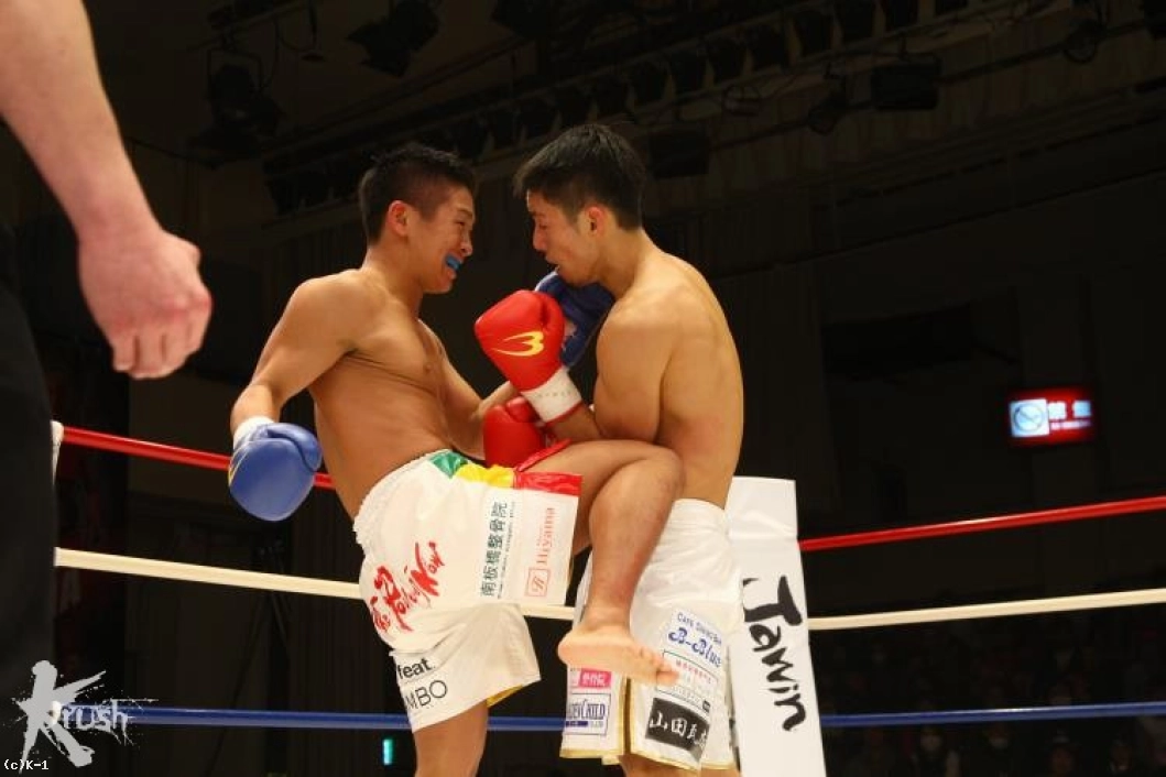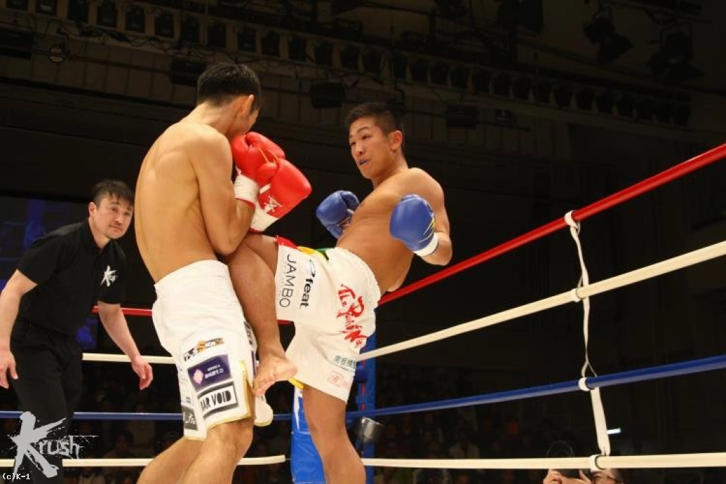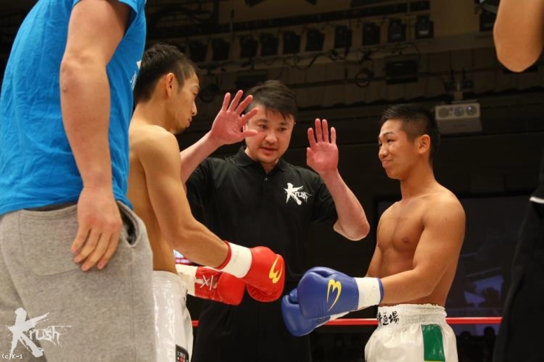 「試合の感想は?)今回、9カ月ぶりの日本での試合なんですけど、いままでの人生で一番、たくさんの人が応援に来てくれて。そういう人たちがいる中で、判定ですけど勝てたことに安心しています。そして、昨年10月に僕にとってお父さんのような空手の先生が亡くなってしまって……(涙)。その先生のためにも勝たないとダメだと思っていたので。先生に教わった蹴り技をたくさん使って、勝ててよかったです。(対戦相手の印象は?)良星選手は試合前に会うと挨拶してくれて、腰が低くて優しいかただったので、気持ちよく戦えました。(今後の目標は?)判定勝利だったんですけど、チャンスがあればK-1に出て優勝したいと思っています」