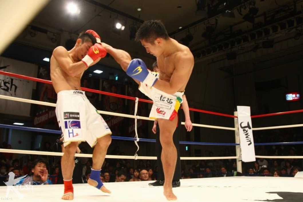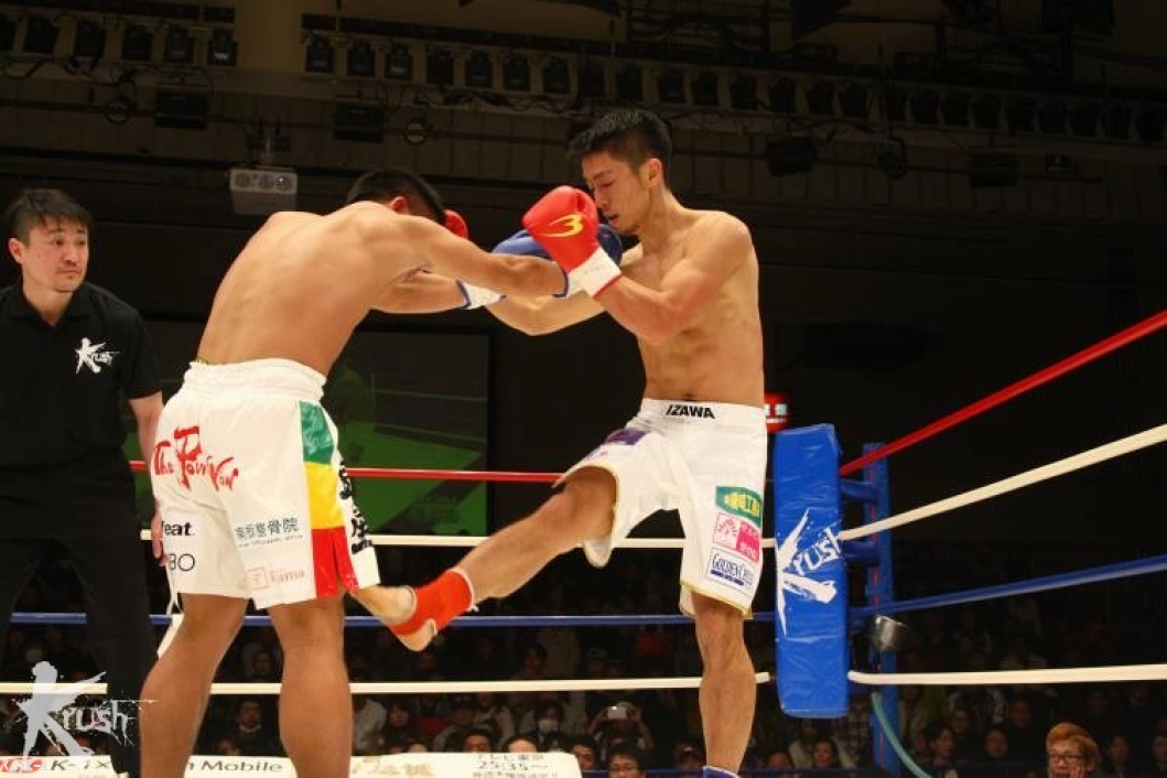 3R、ローのダメージがあるか、伊澤が良星を押していく。しかし良星も劣勢の印象となってくるとショートパンチの連打からローを返して反撃。だが、伊澤はヴァレリーキックの連打で足を効かせ、やはりロー合戦では一枚上手のところを見せる。