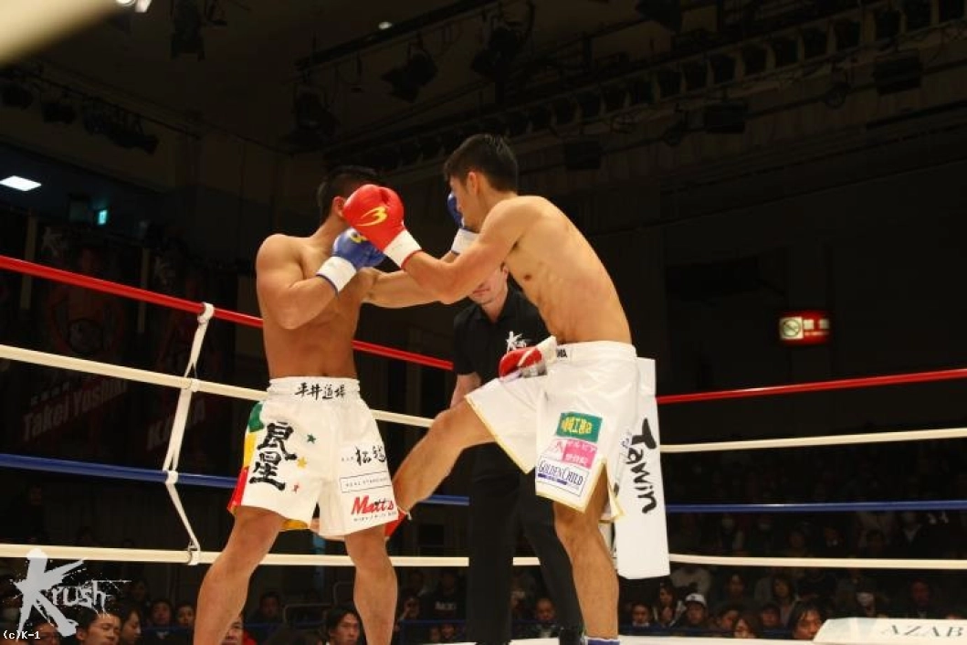 立ち上がった良星に伊澤は追加のダウンを奪いに行き、これに良星もパンチで応じ両者攻防が激しくなる。伊澤はプッシンで良星をロープに詰めてヴァレリーキック(カカトでのローキック)。良星もローを返すが、伊澤のローが効いてきたか、やや足取りが重くなる。しかし良星も右ストレートをヒットする。