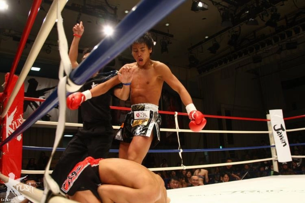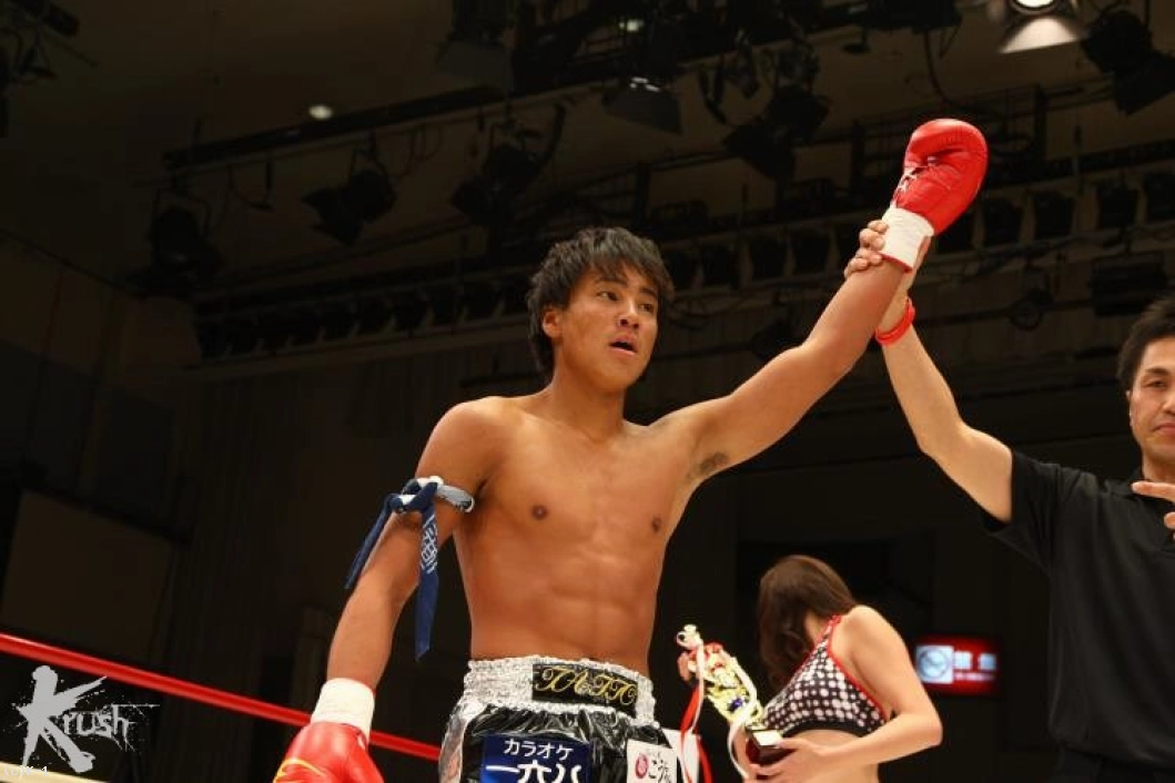 「試合の感想は?)減量がきつくて動けるか不安でしたけど、動けたし最後はKOできてよかったです。(相手の印象は?)パンチはありましたけど、当たらなかったので大したことないかなって。。(今後の目標は?)KOできたので、タイトルマッチをやりたいです。よろしくおねがいします!」