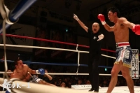 だが前蹴りの後で右ストレートから左フックを送ると、モハンはダメージの蓄積もあったかダウン。立ち上がったモハンは右フックを決めるが、塚越は右ハイで2度目のダウンを決める。なおも立って奮闘するモハンだが、塚越は左フックで打ち抜き、終了間際のノックアウトで勝利した。