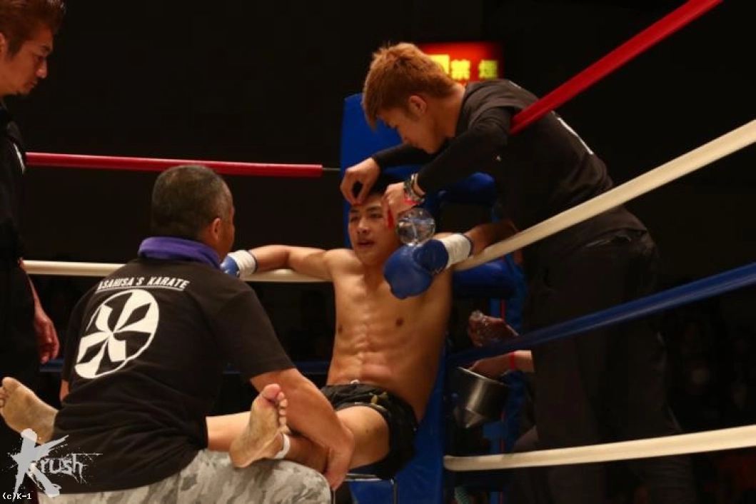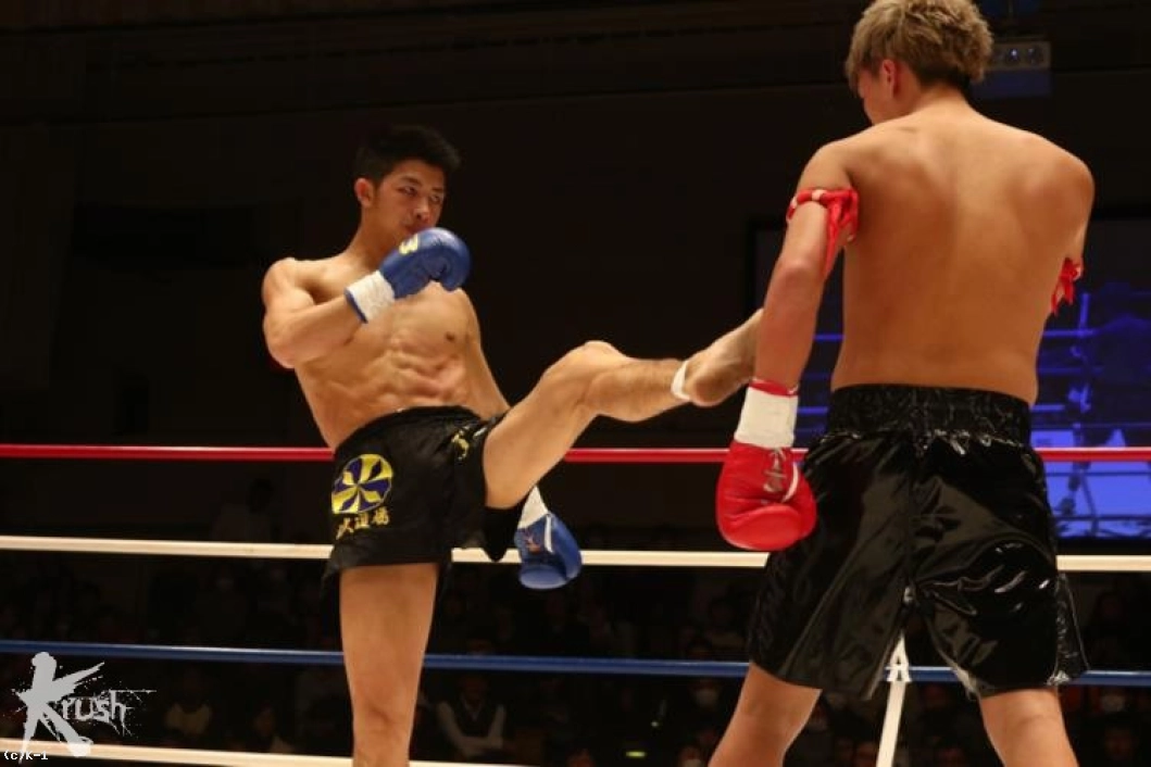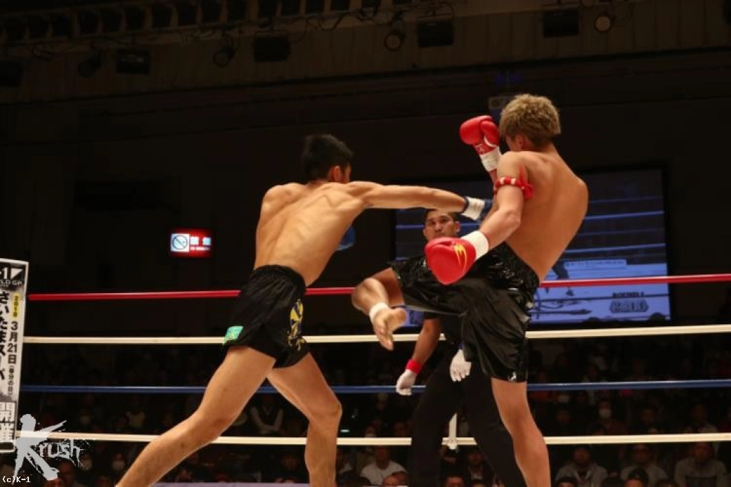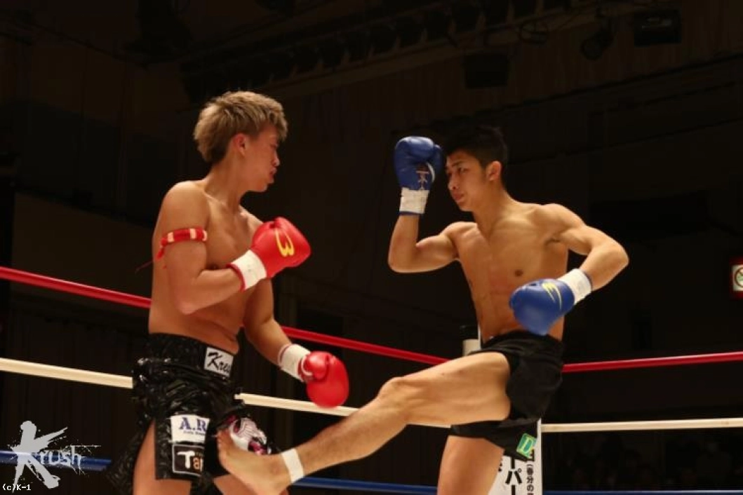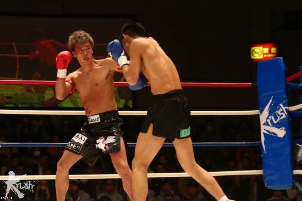 2R、接近して右ローを打ち込む佐野に対し、朝久は腕を真っすぐに伸ばして佐野から距離を作って左ストレート、右フックとパンチを打ち込む。佐野は被弾があっても圧力を発していき、右ローを打ち込む。朝久は右回りしてこのローに対処しながら左ストレート、右フック。佐野はタフさと圧力を見せ、打たれても前に出る。だが、朝久はこの前進を横にかわし、右フック・左フックと当てる。だが佐野もガードを交えて直撃では貰わない。