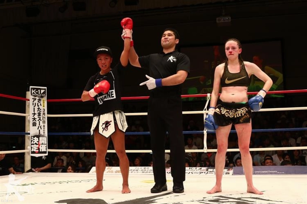 「今日の勝利は練習と応援してくれたみなさんのおかげです。自信が少し取り戻せました。KOで飾れなかったのはまだ自分の力不足なので、またしっかり女子キックの時代を作って行けるようにまた明日から進んでいきます」