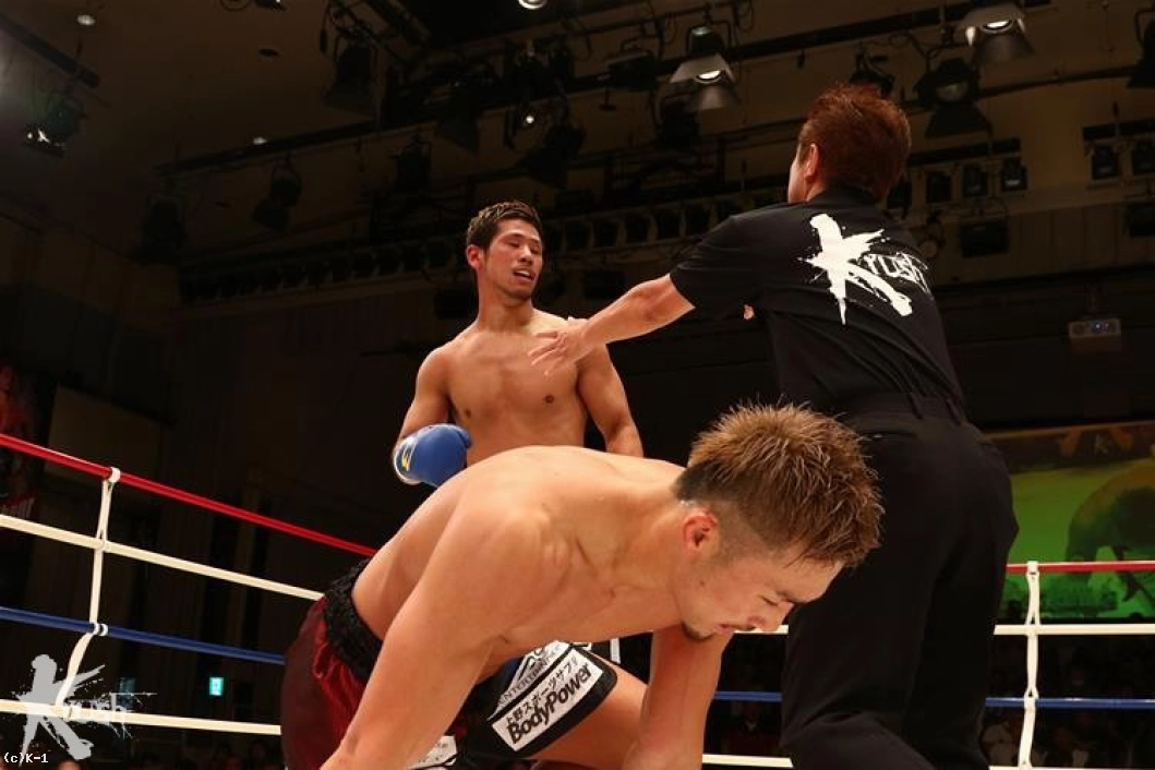 眞暢はさらに左フックでダウンを迫るが、栗原は逆に右ショートフックをカウンターで極め、眞暢を倒し返す。栗原は左フックと右ストレートの連打で眞暢を打ち倒し、2度目のダウンを与えて2Rを終える。