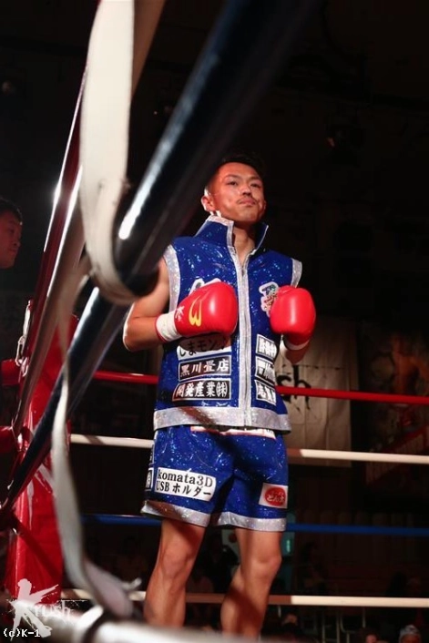 「(試合を振り返って?)今回は結構スピード重視で練習してきました。コンビネーションが打てたらと。でも、なかなか間合いが取れなくて後手に回って、3Rでどうにかというか。1~2Rの段階ではドロ-か負けてるかな、ダウン取らないとまずいなと思ったので。僕のハイキックはなかなか見れないと思うので、KO取れてよかったです。(相手の印象は?)足腰が強いのと、踏み込みが凄く早くて。ベルトを三つ持っているだけあって強かったです。(今後の目標は?)控え室に武居選手が来てくれて。武居選手に挑戦できるように、まずは次をがんばります」