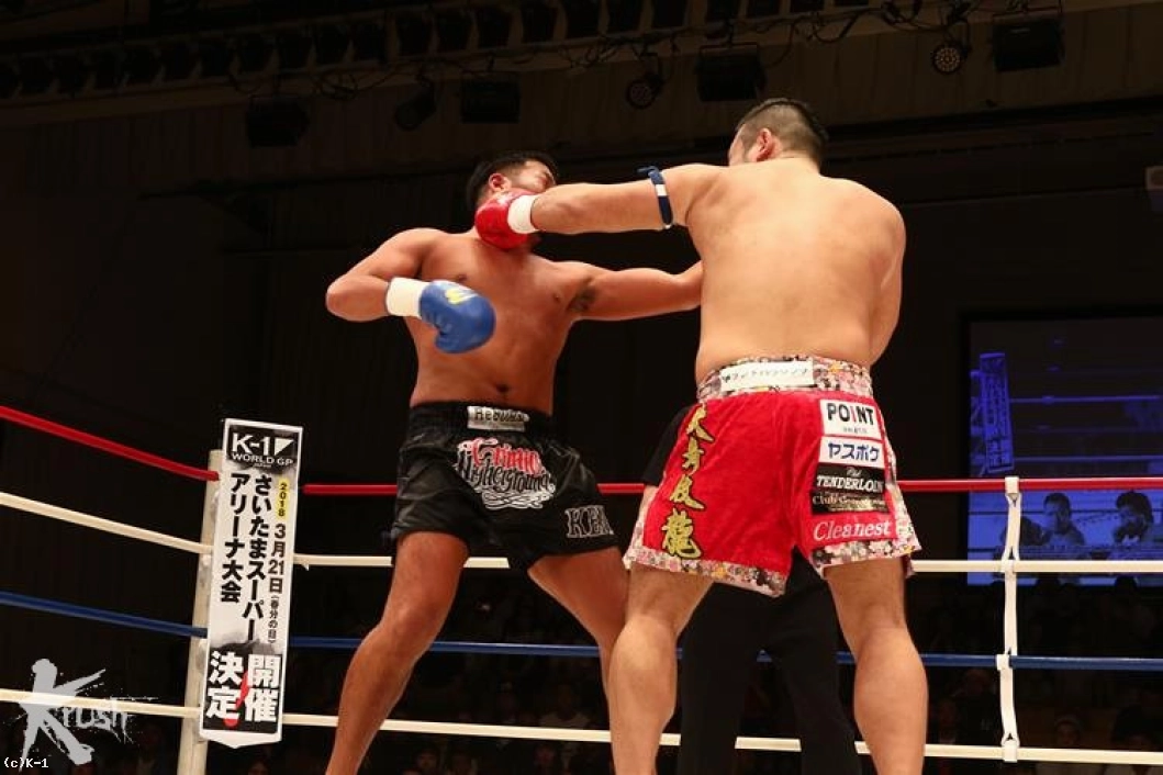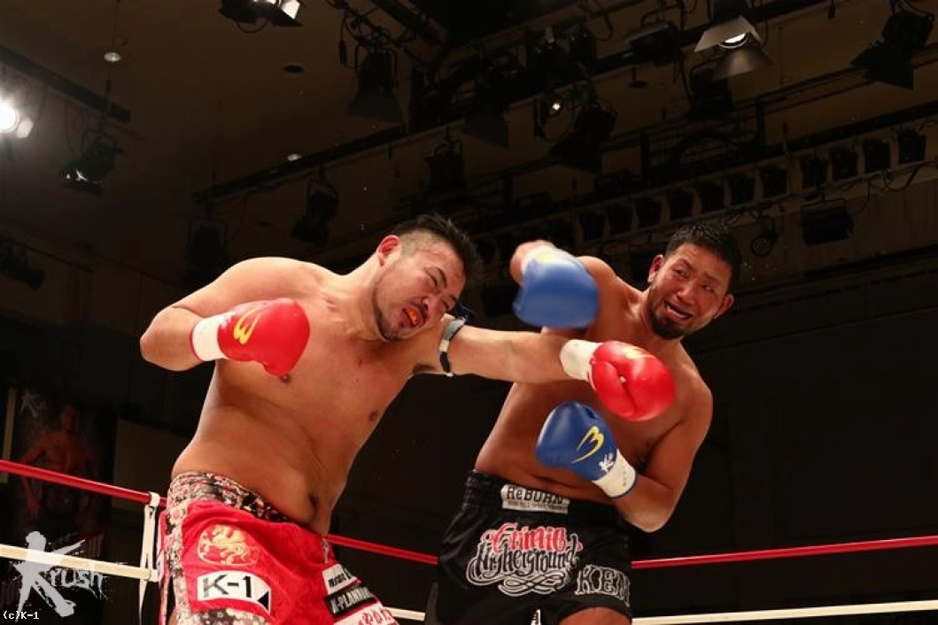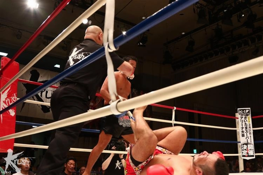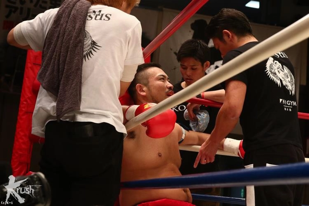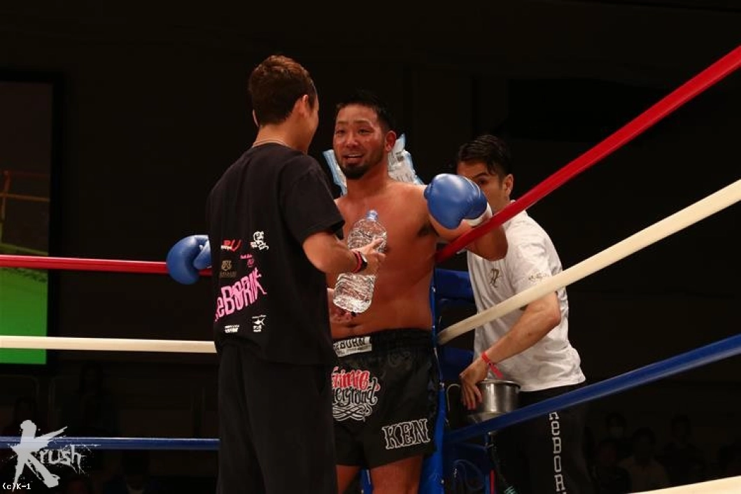 3R、前に出た訓は左フックを連続で当てKENを下がらせる。ロープを背負うKENだが、再び右ストレートで打ち抜き訓を再びダウンさせる。仰向けに倒れた訓にレフェリーはカウントを進めたが、その様子を見て途中でカウントを止め、ノックアウトを宣告した。
