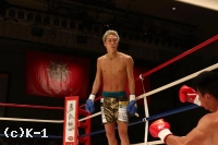 「(試合を振り返って?)今回、試合に向けて過去一番練習してきて。相手の研究も一番したんですけど、それがうまくはまって。まず腹に利かせて、最後はヒザで仕留めるっていうのは最初から決めていたので、バッチリはまりました。(対戦相手の印象は?)すぐに倒しちゃったんであまりわからないんですけど、パンチはフックがガードの上からでも重くて強いなと思いました。(今後の目標は?)ウェイ・ルイのライバルを倒しちゃったんで、Krushで言うことではないですけど、次はウェイ・ルイを倒したいですね」