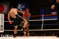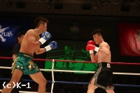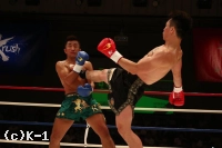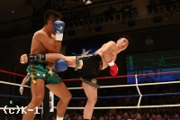 1R、ジェンリャンはバックスピンキックを2連発。しかし小宮は直撃させない。小宮はジェンリャンのローを空振りさせ自らのローを当て、ジェンリャンが連続で放ってくるバックスピンキックにいずれも空を切らせる。