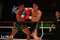 「(試合を振り返って?)コンディションは凄くよかったと思っています。とくに2~3Rはいい試合展開になったと思います。(対戦相手の印象は?)小宮選手はいい動きだったと思います。2~3Rもよかったと思いますが、自分も負けないような動きで向かい合えたと思います。(日本を主戦場にしているファイタ-で戦ってみたい選手は?)日本にはとても優秀な選手が揃っているんですが、中でも大雅選手のお兄さんであるHIROYA選手や、ゲーオ選手と戦いたいなと思っています。(今後の目標は?)じつは目標はとくにベルトというものではないんです。ただ、すべての試合を通してスキルをレベルアップさせるのが目標です。というのは、自分はキックボクシングという競技が本当に好きなので、そういう目標を持っています」