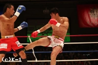 1R、卜部はキレのあるジャブを伸ばしていくが、ジュンフェンは変則的なサイドキックを飛ばしてくる。卜部に対し体の大きさを感じさせるジュンフェンは卜部のローに左フック、右ストレートでカウンターを狙う。サイドキックが足・顔面と飛んでくるため容易に近づけない卜部。