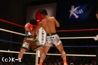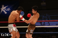 「(試合を振り返って?)倒そう倒そうとしてしまったのと、相手が凄くやりづらかったです。(初めてのKrushの会場の感想は?)歓声が凄く大きくて、やっていて気持ちよかったです。でも、ちょっと試合内容は満足できないですね。(今後の目標は?)Krushの-63kgのベルトと、K-1のライト級を目標にがんばります」