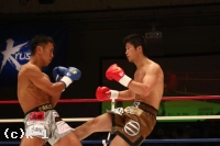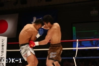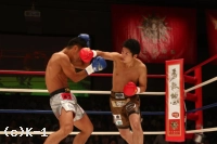 3R、このラウンドも前に出る恭士郎は接近戦から左ボディフック→右ローキック。恭士郎は右ボディフック、左ローと青津をよく見て攻撃を打ち分ける。だが、青津もタフで消耗は感じさせても大きなダメージは見せない。