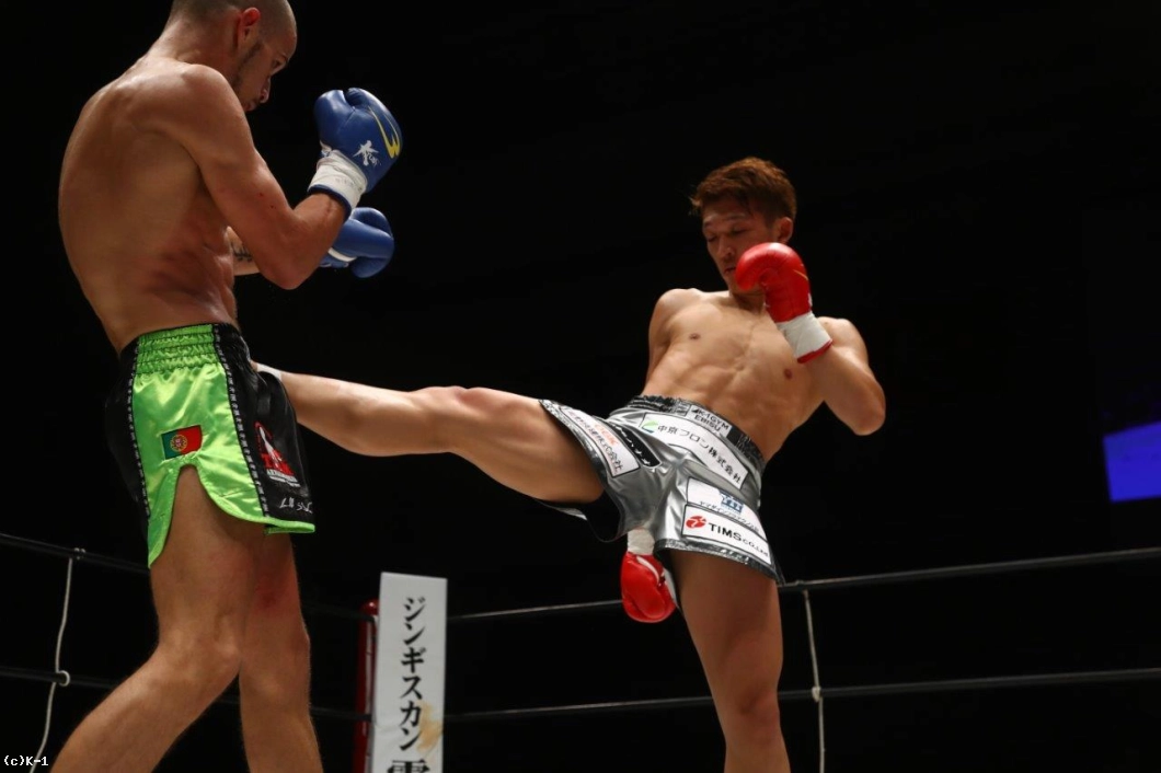 「K-1チャンピオンになって最初の試合だったので、、ちょっと見すぎてしまった部分はあるんですけど、結果的にKOで勝ててよかったです。(対戦相手の印象は?)もっとパワーがあるかなと思ったんですけど、思った以上にはパワーもなくて、これだったらパンチをもらっても大丈夫だなと思って戦っていました。セコンドからも『これなら打ち合ってもいいよ』と言われたので、それも含めて最終的に倒しにいきました。