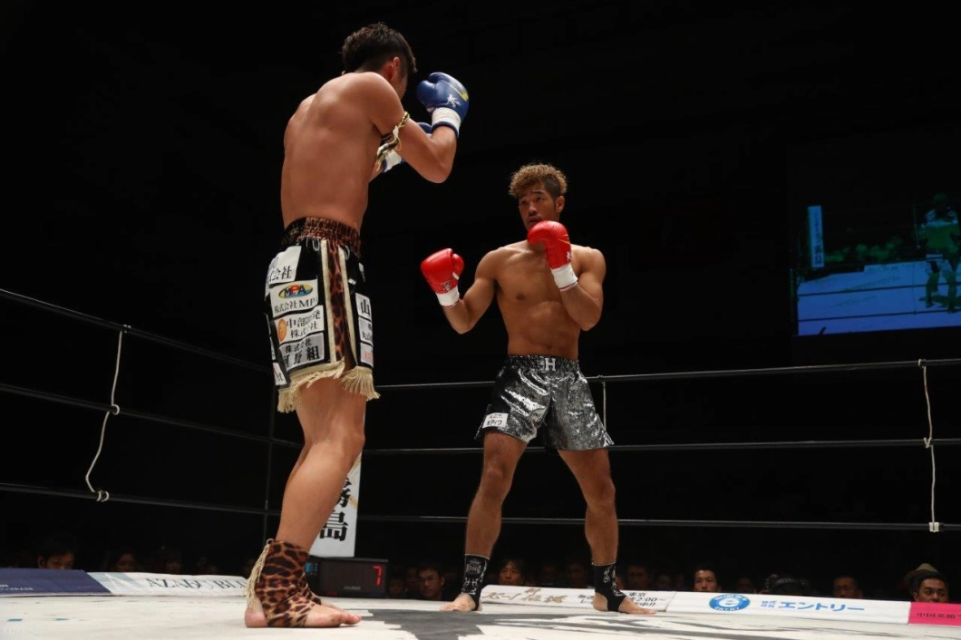 これまで2度対戦経験(東本の2勝)があり、昨年の名古屋大会でも対戦している両者。1R、東本がサウスポーから左ミドルを当てて先制。東本は左の蹴りをローでも放ち、さらに左クロスで泰斗に襲い掛かる。東本は左ボディストレート、左ミドルと攻撃を散らす。泰斗はこれに右ミドルを返して応戦するが、もう一つ前に出られない。フック・アッパーと立体的なパンチの組み立てを見せる東本はラウンド最後に左スイングフックを放つがこれは泰斗が当てさせない。