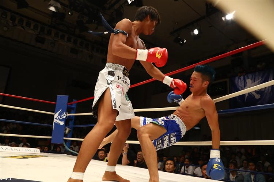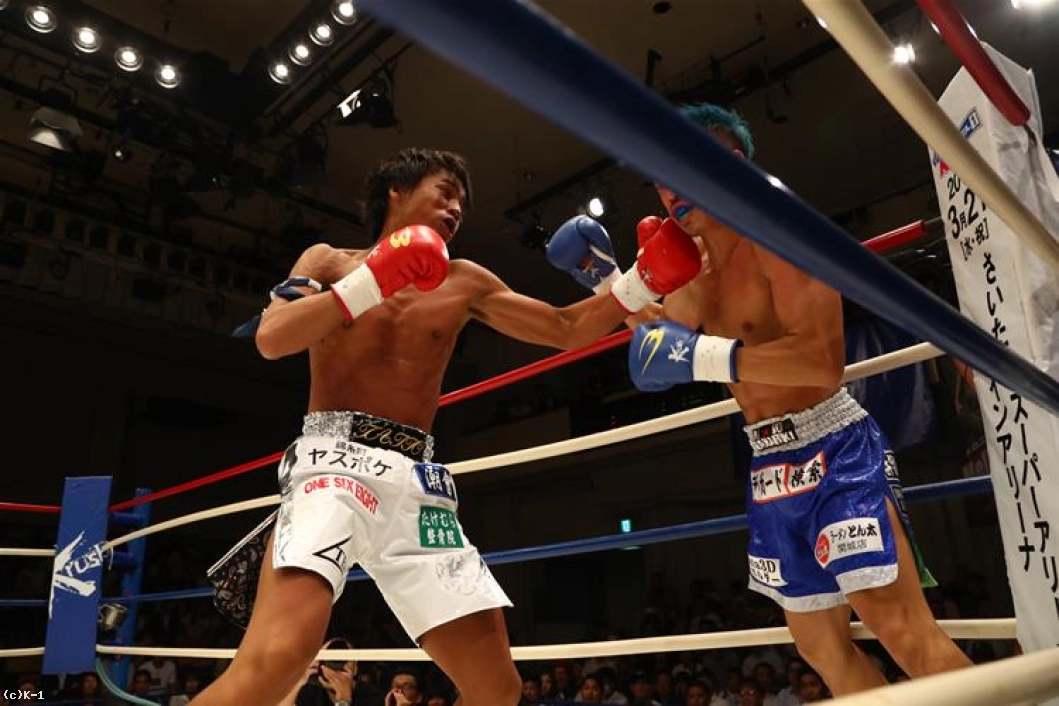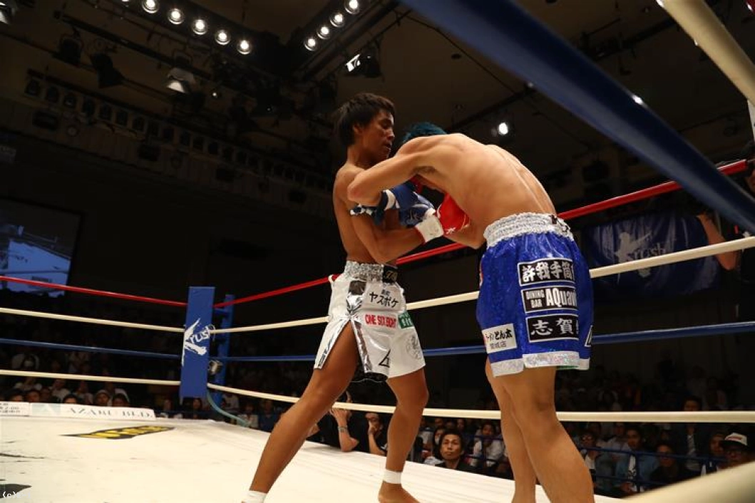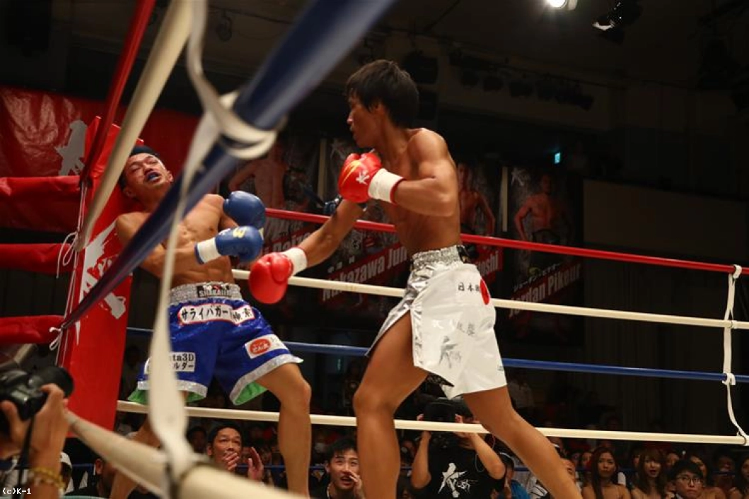 「(試合を振り返って?)前回の試合の反省含めて、冷静に戦うことをイメージしてずっとやってきて。まあでも、1RKOじゃなかったのはちょっと悔しいですけど、冷静に戦えてたので今日はよかったと思います。(1Rで倒せそうな感覚はあった?)そうですね。最初にダウンとったときにいけるなと思ったんですけど、時間的にあと1分をきってたんで悔しいですね。
