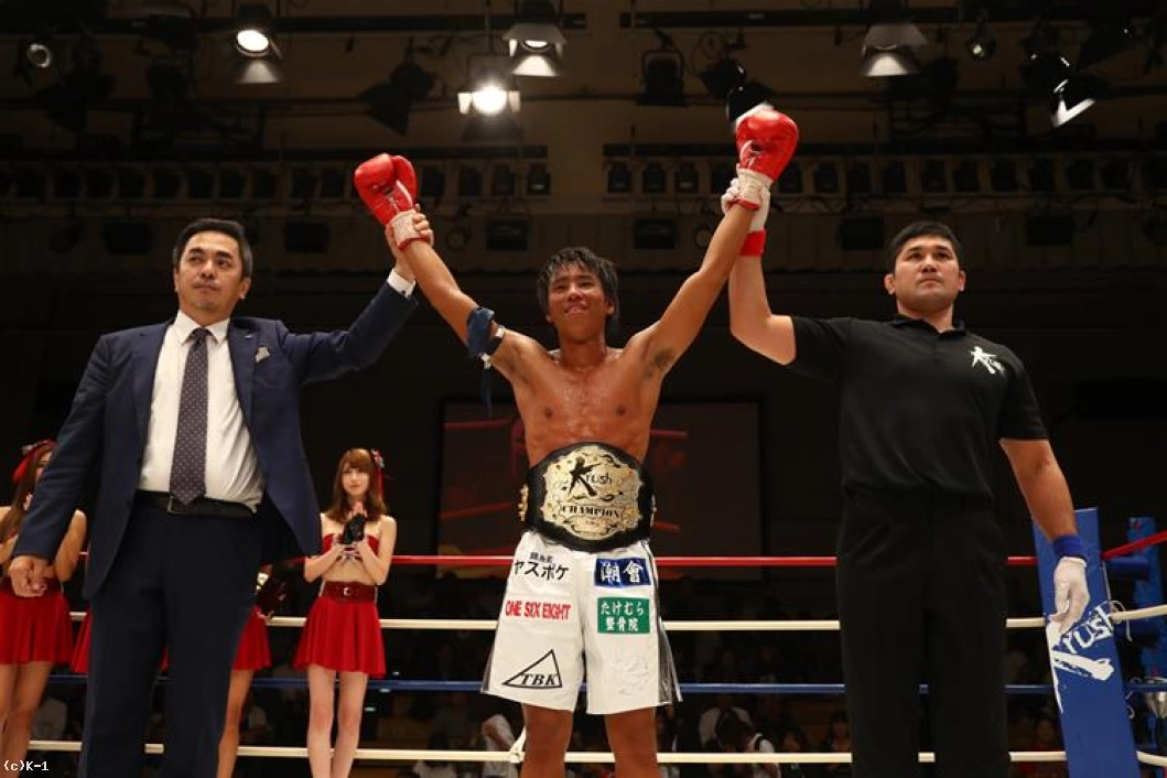 (相手の粘りは感じた?)そうですね。打たれ強さはあるなっていうのは感じました。ボディも全部効いてたんで、やりづらくはなかったんですけど、凄く粘るなというか根性はあったと思います。(ベルトを巻いた感想は?)やっとかっていう感じですね。凄く重みを感じますね。(王者としてどんな戦いをしていきたい?)恥のないような試合をどんどんやっていかないとっていけないなって思いますね。(目指すチャンピオン像は?)チャンピオンイコール強い、イコールKO勝ちというのをずっと思って試合をやってきたので。次の試合からドンドンKOを狙ってやっていこうと思いました。
