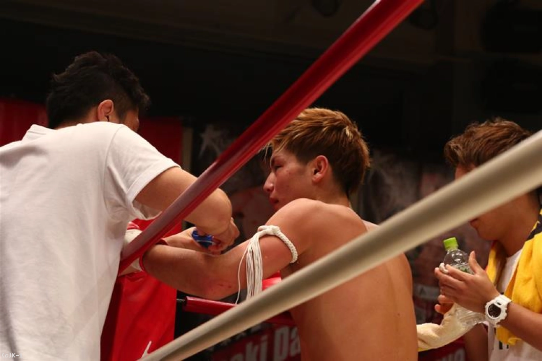 「前回・前々回と2連敗してメチャクチャ悔しくて、今回はKOで勝ちたいと思ったんですけど、渡辺選手が強くて、ありがとうございました。KOで勝ったのでプロとしての仕事はできたと思います。自分は中国に借りがあるので、中国に乗り込んで戦ってくるので応援よろしくお願いします」