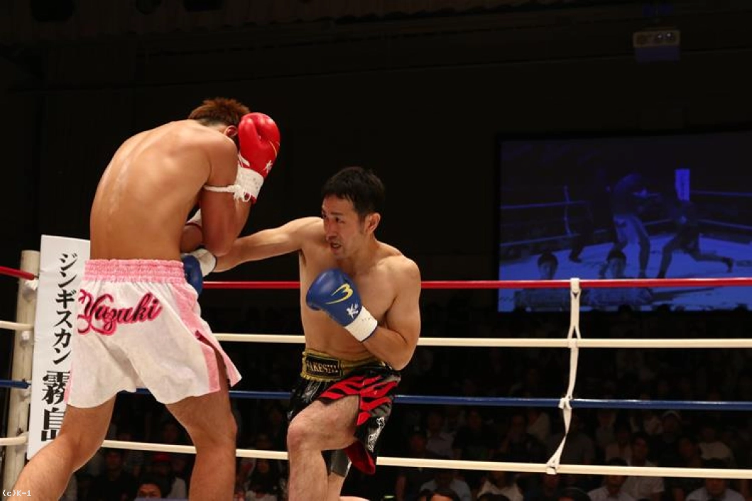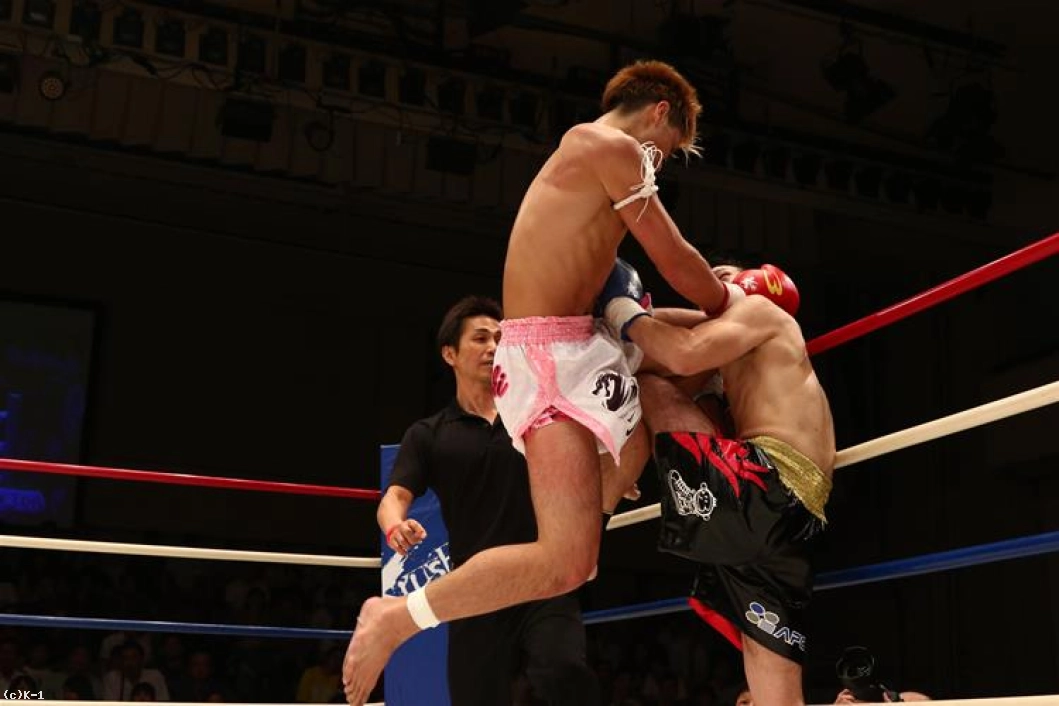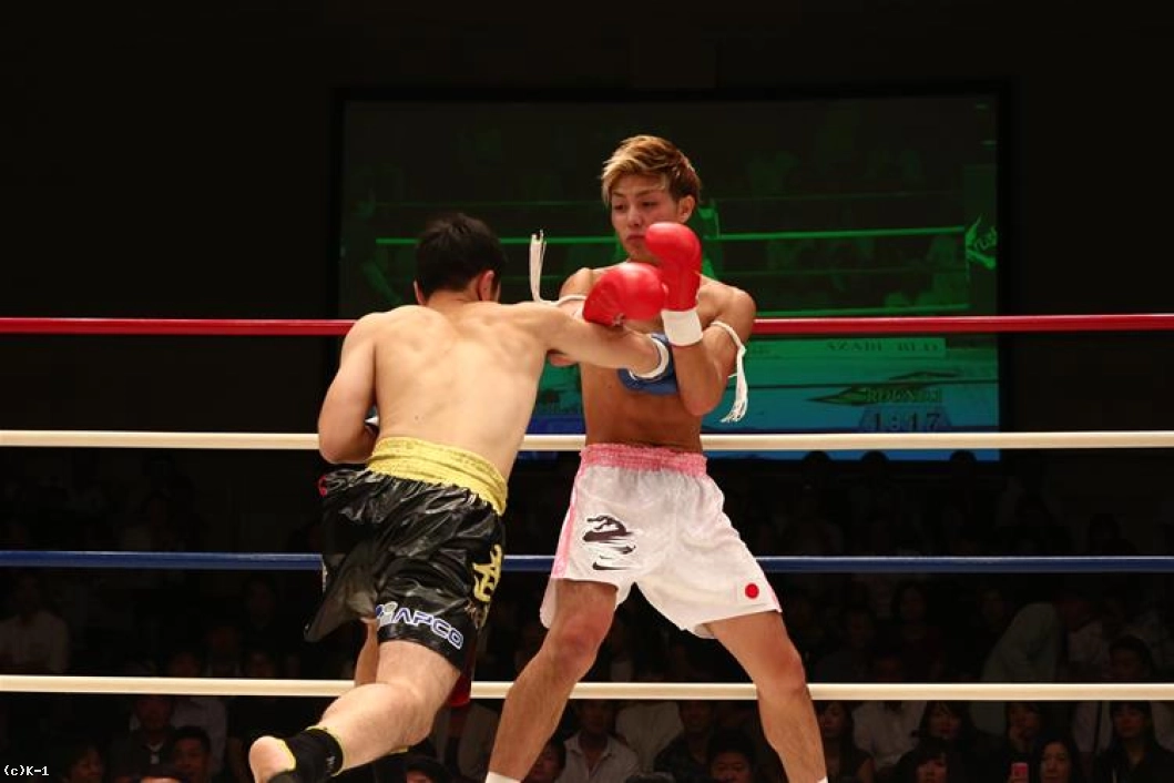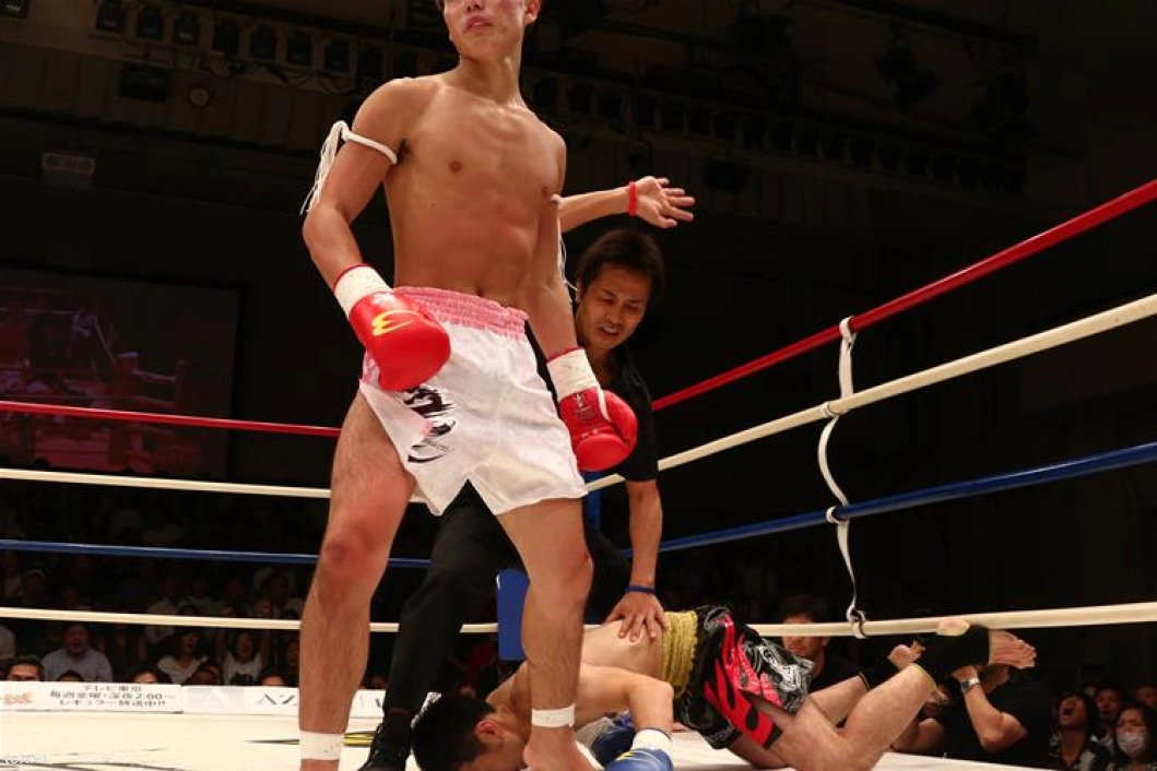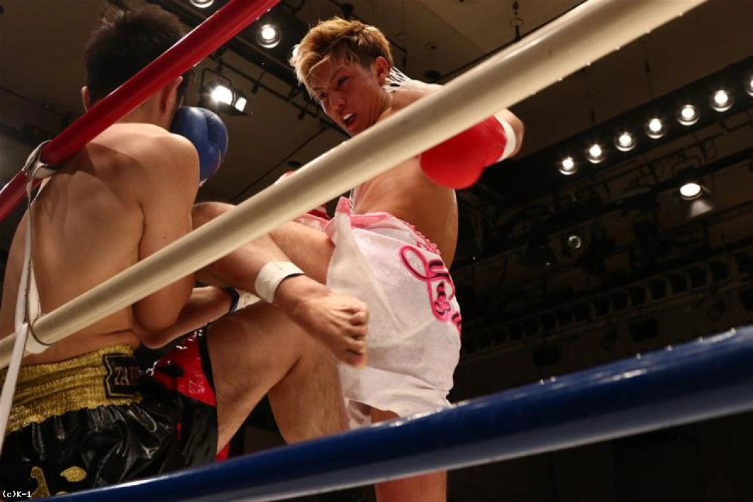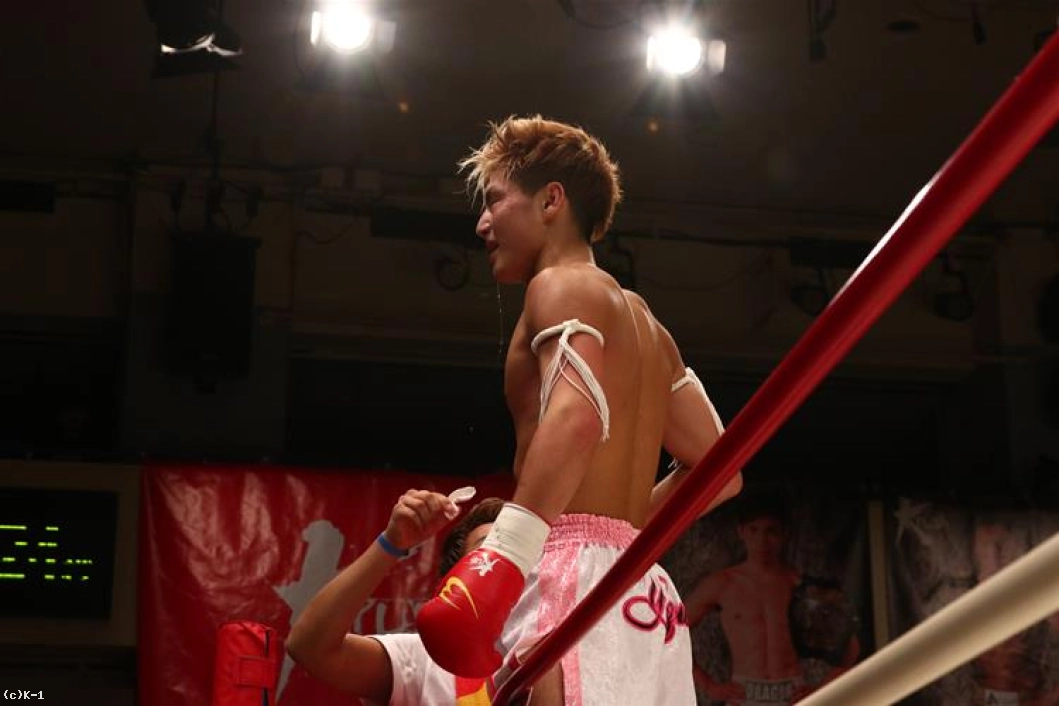 「(試合を振り返って?)今回はここまで二連敗しているので勝つのが大前提で、プラス倒すことを考えて。ただ、右をもらって止まっちゃいましたね。最終的にKOで勝てたのはよかったです。(相手の印象は?)パンチが強くて、一発もらったときに危ないなと思って。1Rで時間があったらどうなってたかわからないです。(最後はヒザでKOしたが?)ヒザの練習はずっと続けていて。試合の直前までヒザを含めて全体を練習して、最後に(ヒザが)出たのでよかったです。(今後の目標は?)今後、58kgでベルトを取りたいんですけど、今年は二人負けているので。天馬選手とはこの階級の頂点でまた戦えたらと思っていて。ワン選手も先日はホームでやってくれたので、今度は自分が中国に行って、アッチのホームで勝ちたいと思います」