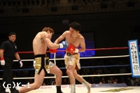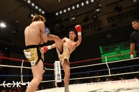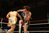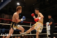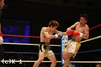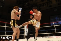 2R、寺戸は右ローから右クロスをヒット。久保は間合いを詰めてパンチで迫る。しかし寺戸はバックステップして距離を保って右ローを決める。だが久保も右ローを同じくヒット。寺戸はボディへのヒザを入れるが、久保は右ローを2発入れる。寺戸は依然距離を保って右ストレート。久保はしかし右ローを当てる。寺戸、久保どちらも右ローを当て合う。