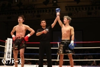 「(試合を振り返って?)いけるところでいけなかったっていうのと、出貝選手のベテランの巧さというか。けっこうやられましたね。(次回は-53kg王座のタイトルマッチとなるが?)なんか、周りにはベルトに興味がないと思われてるんですけど(苦笑)、僕はしっかり勝ちたいと思っているので。(今後の目標は?)今後もしっかり勝って、次はK-1に上がることができればと思います」