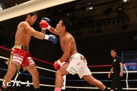 2R、稲石がボディフックを打ち込むと、石田はより以上に大きな音を立ててボディフックを当て返す。稲石はジャブからミドル、バックスピンキックとトリッキーな持ち味を発揮。しかし石田も左フックを当て、稲石にペースを握らせない。石田は稲石の流れを分断せんと、ミドルを度々キャッチしてしまいレフェリーから注意を受ける。稲石は左ショートストレートを当て、これでやや石田を下がらせ2Rを終える。