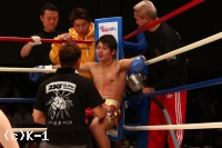 3R、稲石は肘から先をグルリと回す動きを見せ、石田をかく乱。そこから右ミドル、前蹴りと重い攻撃で場内をどよめかせる。石田のハイもしゃがんでかわす稲石。稲石はガードを下げた構えからジャブ、左フックと見舞い、石田のハイを受けてもダメージを見せない。石田が左右ミドルから前に来ても左右フックで応戦して試合を終える。