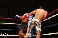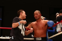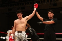 ダメージのうかがわれるKENだが、立ち上がると打ち合いに臨む。右ストレートを決めるが、杉本はボディにヒザを入れ、左フック・右ストレートから最後は左ハイを決め、これでKENをバタリと倒してKOした。
