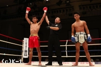 1R、16歳の中澤は開始から積極的にロー、ミドルを繰り出していく。しかし上背で勝る鈴木が体圧を発してロープに詰める。鈴木は接近戦で右ボディフック、左ロー。このローがローブローとなってしまう場面もあったが、鈴木はさらに右ロー、左ボディフック、右ボディストレートと丁寧にボディを攻め、打ち下ろしの右ストレートと攻勢1Rを終える。