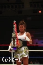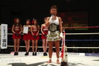 「(試合を振り返って?)いやあ、とにかくホッとしています。で、もう全ては勝つことだったんで、本当に今はホッとしているんですけど、また反省点もいろいろあって、動き悪かったなっていう中で最後はみんなの声援が本当にリングの上まで届いてがんばれたっていう感じだったので、終わってホッとしています。ありがとうございます。(対戦相手の印象は?)COMACHI選手がどうというより自分の動きがかなり悪かったので、そういうところを反省しながら。まあCOMACHI選手も凄いアグレッシブに来てたので、本当に勝ててホッとしています。(初代のベルトを実際に巻いてみて?)今はまだ実感が湧かなくて、夢の中にいるようなんですけど、また明日、明後日と日が経つにつれて、実感も湧いてくると思うので、王者としてしっかり君臨できるような闘いをしていきたいなと思っています」
