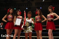 「はじめまして、松下えみです。COMACHI選手ありがとうございました。大きな舞台に立たせて頂いて関係者のみなさん、ありがとうございます。会場まで駆けつけてくれた、応援してくださったみなさん、ありがとうございます。是が非でもベルトを取って笑顔でみなさんと会場を後にしたいと思っていたので、不器用ですけど、もっといい勝ち方ができるよう頑張りますので、これからもよろしくお願いします。この後のメロニー選手とKANA選手の試合も勉強させて頂きながら応援させて頂きます」