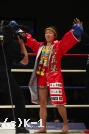 3R、COMACHIは後ろ回し蹴りを放って空振りするもその後で顔面前蹴りを連続でヒット。さらにハイキックも見舞っていく。松下はやはり圧力を発して左右のパンチで襲いかかるが、COMACHIはここでも顔面前蹴りを当てる。松下はしかし戦法を変えず、COMACHIを押して下がらせながら左右のショートフック、ストレートを浴びせる。COMACHIはこれに崩されながらもミドルで応戦。判定は30-28、29-29、29-28の2-0で松下。前に出て攻める姿勢と圧力で上回りベルトを獲得した。