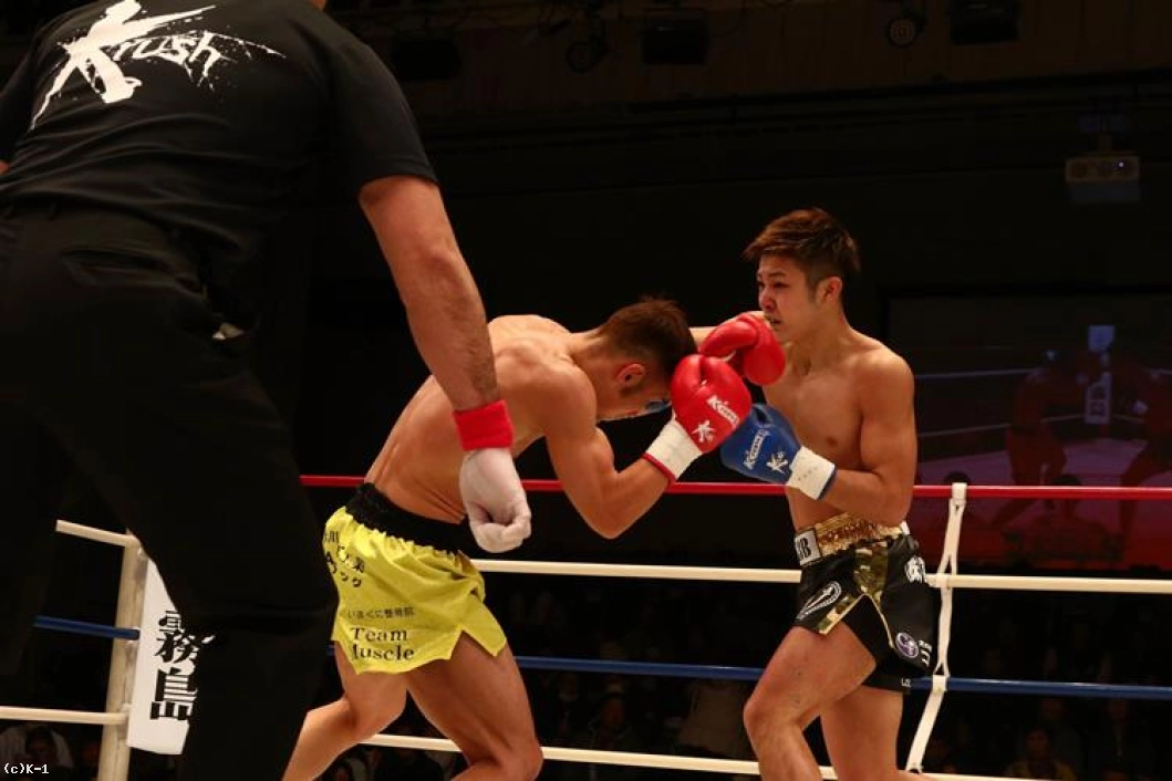 1R、玖村はサウスポーの大川に右ミドル、右前蹴りと入れ、大川の蹴りをかわして右ロー、右ストレートも当てていく。大川が左ストレートを振るって打ち合いに来るが、そこで右ストレートから返しの左フックでとらえてダウンを奪取。立ち上がった大川に右ハイを決めて2度目のダウンを与えると、大川は左ストレート、右フックでダウンを奪い返しに来るが、最後は玖村が右ストレートから左フックで大川を腰砕けに倒し、初回KOでKrushデビュー戦を飾った。