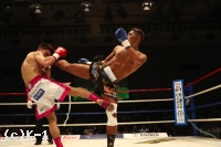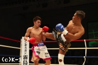 挽回に出た村越は右ミドルを打ち込んでいく。そして西京のミドルをかわした後でリターンの左ストレートをヒット。だが、西京もパンチの比率を増やし、右ジャブ、左ストレートと繰り出していく。対する村越は右ミドルに戻って当てるも、西京は左ストレートをここでヒットする。村越は西京を押し返して右ミドル、右ロー、最後も右ミドルも当てて終了する。ゴングが鳴ると両者ガッツポーズ。勝敗の行方は? 判定は10-9で村越、10-9で西京と分かれた後で最後の1者は西京を支持。初防衛を成し遂げた。