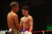 3R、距離感を掴んだかの西京はリラックスしたステップからローを当て、ステップインして左ストレート、右フックを振るう。だが、村越もボディストレート、右ミドルで反撃。ロープ際に下がり、カウンターとリターンを狙うかの西京を追っていく。村越は右ミドルを起点に攻めて出る。だが、蹴りは当てても続いてのパンチを西京は当てさせない。西京は左ストレート、右フックをまとめに行くが、村越はクリーンヒットを与えない。判定は30-29(村越)、30-30、29-29で規定に達しずドロー。延長戦に突入となる。
