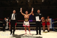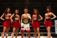 「(試合の感想は?)チャンピオンになってから、あまりベルトのことを考えないのを意識してるんですけど、タイトルマッチになると独特な緊張感があって。試合中に絶対に負けられないなって思いました。(対戦相手の印象は?)前回の試合も観てたんですけど、いままでで一番強敵だって意識があったので。まあ、強い相手に僕はあんまり負けないので。気を引き締めて試合ができました。(本戦と延長で2回の判定が出たが、それぞれ自分が取っているという気持ちはあった?)本戦の2~3Rは取ったなと思って、判定で勝ったかと思ったんですけど。でも、イヤな予感はしていたので(苦笑)。延長も集中していけましたね。延長はドッコイドッコイだと思いました。