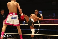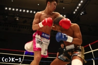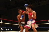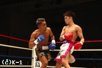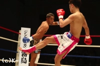 2R、西京は村越のローをスカしてかわし、右ジャブを当てる。だが村越も同様に西京のローを足を引いてかわし、逆に左ローを当てる。西京は接近するとパンチをまとめ、村越が打ってくるとジャブ、ストレートでカウンターを取る。そして蹴りには蹴りのリターンを忘れない。村越をロープに詰めたところでステップインしての左ストレートをヒットする西京。村越はミドルを放つもかわされてしまい、西京の左ストレートも被弾する。ラウンド最後は西京が左ミドルを当てて終える。