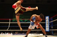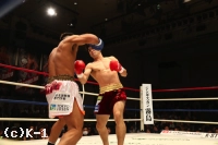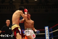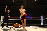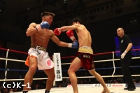 だが、FUMIYAはパンチに蹴りを混ぜた攻撃で、ジャブ、ミドル、跳びヒザと再び中村を攻める。だが、守勢の中村はここで左アッパーから強打の右フックでFUMIYAをフラつかせ、続いて跳び蹴りで襲うが、これはFUMIYAがダッキングで間一髪でかわす。FUMIYAが放った右フックをかわした中村だが、続いて放ったバックブローでFUMIYAがダウンを奪い返して2Rを終える。