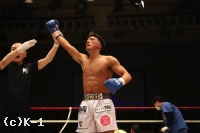 「(試合の感想は?)中村選手は強くてタフで。ダウン一回取られて、取り返して『もう立たないでくれ』って思ったんですけど立ってきて…意地でも負けたくなかったんで頑張りました。(対戦相手の印象は?)僕、今回が6戦目なんですけど、正直負けるんじゃないかなって思っていて。でも試合をやってみて、なんとかいけました。(-65kg次期挑戦者決定トーナメント決勝への意気込みは?)記者会見でも言ってるんですけど、篠原選手にKHAOSで負けていて、その悔しさを次の5月につなげられるとうれしいですね。やるからにはチャンピオンベルト、絶対に獲りたいので。中澤選手を倒して、チャンピオンベルトを獲りたいです」