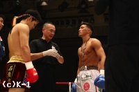 立ち上がったFUMIYAに中村は跳びヒザで向かい、そこから右ストレートで襲い、FUMIYAを再度のダウン寸前までフラつかせて終了する。