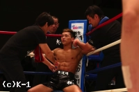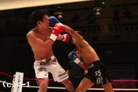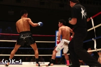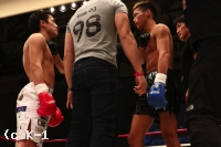 3R、両者鼻血が見られる。稲石は頭を上下左右に動かしながら、フック・ミドル・ボディ打ちと、とらえづらい動きでバズーカを攻める。やや失速気味のバズーカは稲石のトリッキーな動きを持て余し気味で、ミドル・フックと浴びてしまう。しかし判定は30−28、30−29、29−28の3−0でバズーカ。格上の稲石を降す勝利を得た。